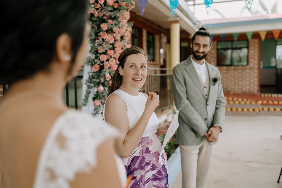 En octobre 2024 je donne naissance à ma fille. Devenir maman vient retendre quelques fils, couper d'autres. Je suis à la recherche de sens, j'ai besoin de repositionner mes priorités. Je sens que je veux oeuvrer dans un cercle plus accessible, plus tangible. L'expérience de la célébration du mariage de mes ami.e.s devient comme une boussole. Je commence alors une formation auprès de l'ACOR, l'association des célébrant.e.s et officiant.e.s romand.e.s, avec Léa Candaux, Julien Abbegglen Verazzi et Andrés Allemand Smaller comme formateur.ice.s qui comptabilisent à eux trois des centaines de cérémonies.J'en sors déterminée, prête, outillée et confiante pour offrir mes services en tant que célébrante.